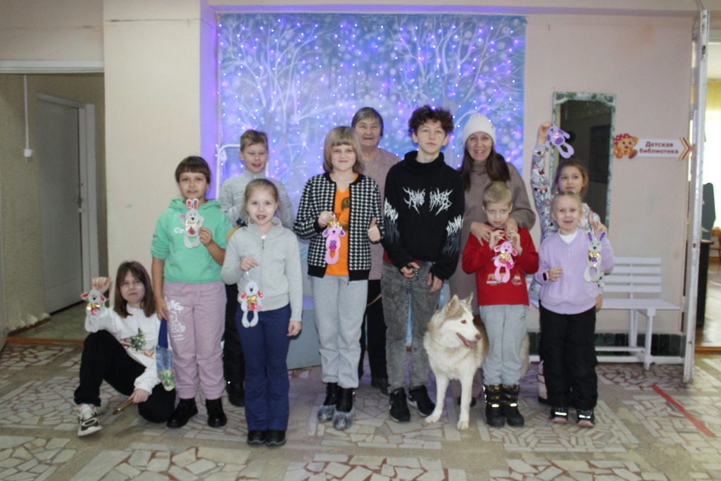 Конечно же, на протяжении всей встречи ребята общались с хаски Розой, а в заключение сделали общее фото, поздравили друг друга с наступающим Новым годом.