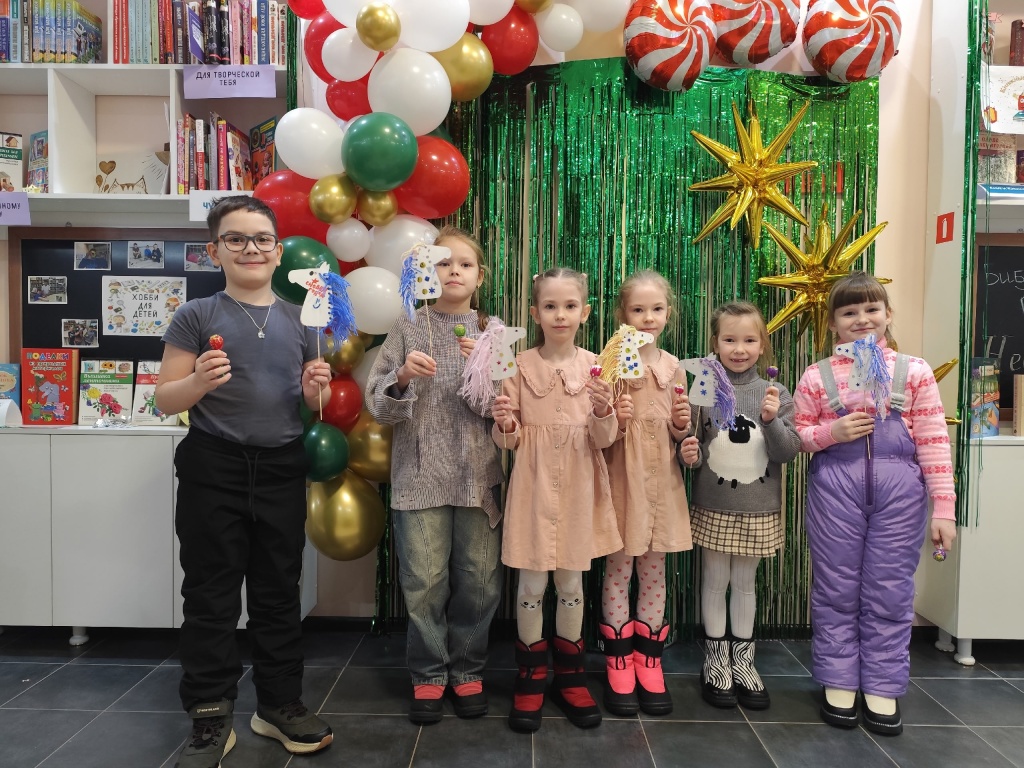 Дети не только узнали об истории возникновения новогодних украшений, но и получили возможность проявить себя в роли мастеров ёлочных игрушек. В ходе творческой части мастер-класса участники создали символ наступающего 2026 года – лошадку. Используя цветную бумагу, клей, блестки, пряжу, каждый участник изготовил особенную лошадку, которая станет не просто украшением, а настоящим оберегом. Каждая ёлочная игрушка получилась особенной: одни были украшены яркой гривой – пряжей, другие – расклеены блестками.