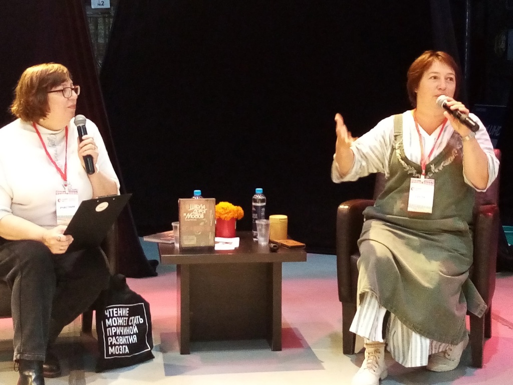 Нелли Бельц также спросила о переходе от реалистической прозы к сказочным мирам, как в серии романов «Семь прях». Тамара Михеева призналась, что для нее это была увлекательная задача – построить целостную вселенную со своими законами и магией, оставаясь верной глубине характеров своих героев.