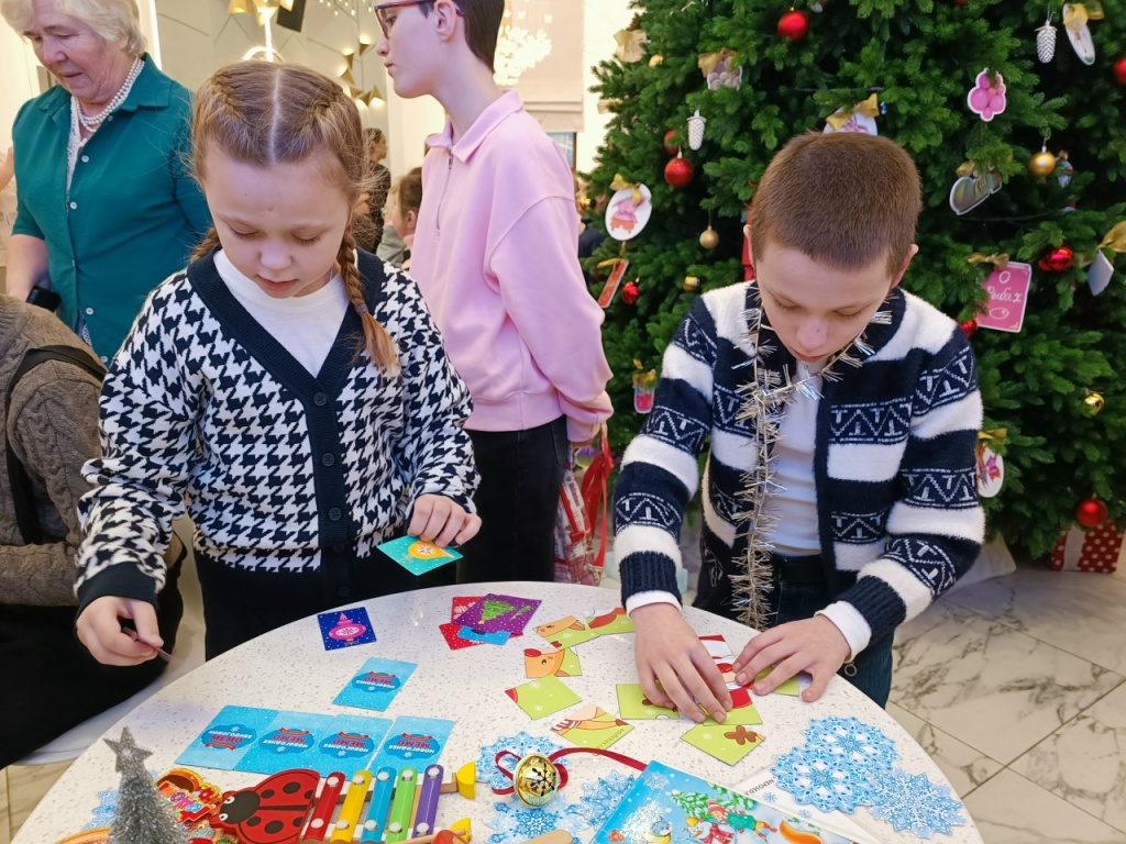 На площадке «Ларец новогодних головоломок», которую организовал отдел обслуживания старших школьников, маленькие зрители разгадывали интеллектуальные загадки, собирали паззлы и раскрашивали изображения любимых книжных героев.